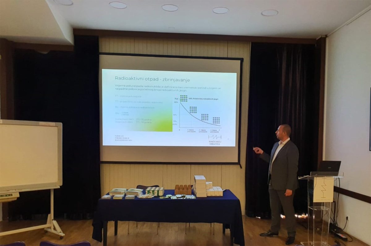 Našem predavanju su se odazvali učenici Srednje škole Ivana Trnskoga iz Hrvatske Kostajnice, te su uz predavanje, imali priliku obići Tehnički muzej Nikola Tesla, Festival znanosti, te Info centar o radioaktivnom otpadu u Zagrebu. Ove godine obilježavamo 80. obljetnicu prve kontrolirane lančane reakcije, događaja s kojim je započelo „Atomsko doba“. Energija proizvedena prvom lančanom reakcijom bila je toliko mala da nije mogla napajati niti jednu žarulju, ali taj događaj je promijenio i oblikovao svijet kakav danas poznajemo. Iako je primjena nuklearne tehnologije i ionizirajućih zračenja doprinijela napretku i razvoju naše civilizacije, pred nas se postavlja odgovornost za sigurno zbrinjavanje radioaktivnog otpada nastalog korištenjem nuklearnih tehnologija.